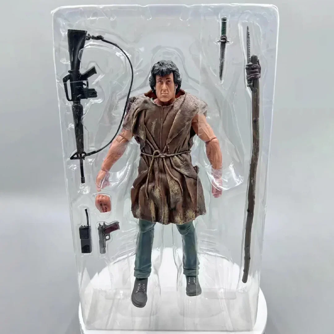 Comes with essential gear, including weapons and survival tools, reflecting Rambo's resourcefulness and combat prowess.Stands at 7 inches tall, making it a commanding presence in any collection and a standout piece on display.Presented in a specially designed box with a clear display window, perfect for collectors who want to showcase this iconic figure while keeping it protected.